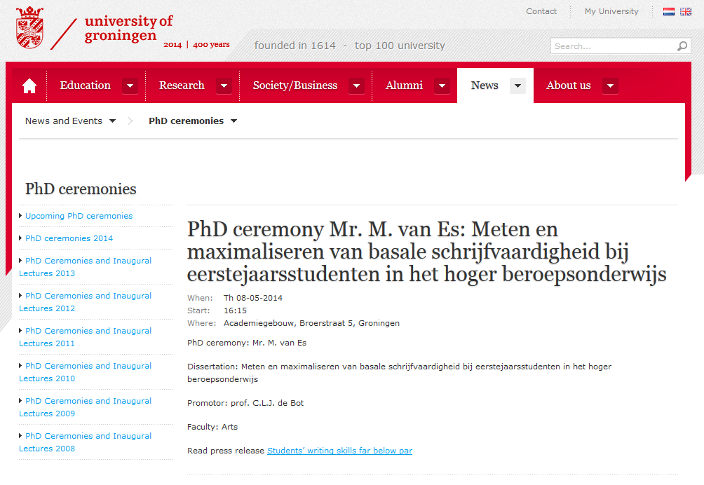 Het proefschrift is hier te vinden. Het persbericht van 28 april 2014 hier.