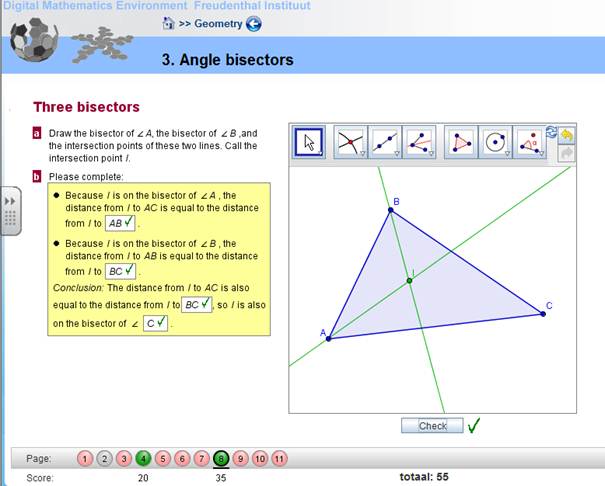 The third session I attended was more a discussion and critique session, led by Monaghan and Mason, on the topic of ‘cultural affordances’. The basis was the work of Chiappini, who -in the ReMath project- used the software program Alnuset (see here to download it) to look at (its) affordances. Monaghan described the work (a paper on the topic, there will be a publication in 2013, was available) and then asked some questions. Chiappini distinguishes three layers of affordances: perceived, ergonomic and cultural. Engestroms cycle of expansive learning is used, as I understood it, to use activities as drivers for transformation of ergonomic affordances into cultural affordances. Monaghan then asked some critical questions, under which whether the theory of Engestrom really was necessary, wouldn’t for example Radfords work on gestures be more appropriate? Another comment pondered whether the steps for expansive learning were prescriptive or descriptive. I think the former: as the author has made the software with certain design elements in mind