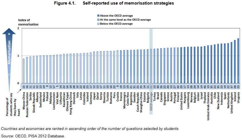 Some points in chapter 1 interesting (although I don’t know enough about ethnicity and culture to really comment) but also, I thought, an exaggeration of the US crisis (at least, based on PISA). “The nations that moved ahead of us had taken note from PISA of their shortcomings in schooling, and they improved their results. We continue downward.” (p. 23). Really? (From the US country notes)