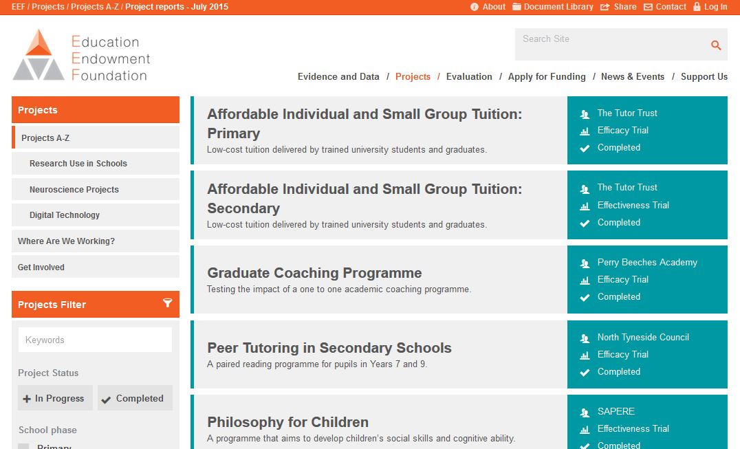Every now and then the Education Endowment Fund releases a series of reports. It’s interesting to see the sheer difference in media attention they create, and also the buzz on social media. I collated all the studies in a Google spreadsheet: